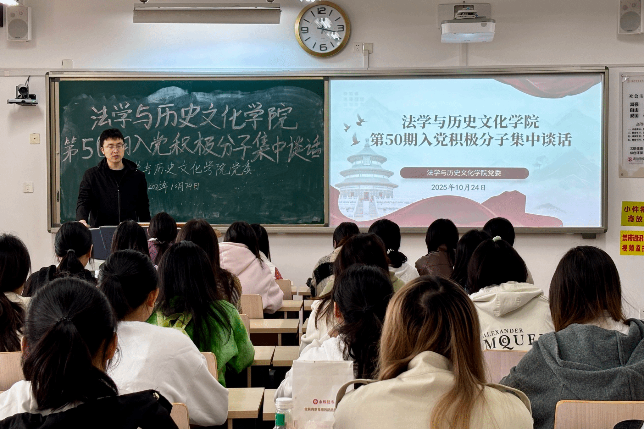为坚定我院入党积极分子的理想信念,培育有担当、高素质的党员后备力量,我院于10月24日在明德楼A207教室开展第五十期入党积极分子集中谈话。本次谈话由我院学生第二党支部书记张俊主讲,我院第50期入党积极分子参加。