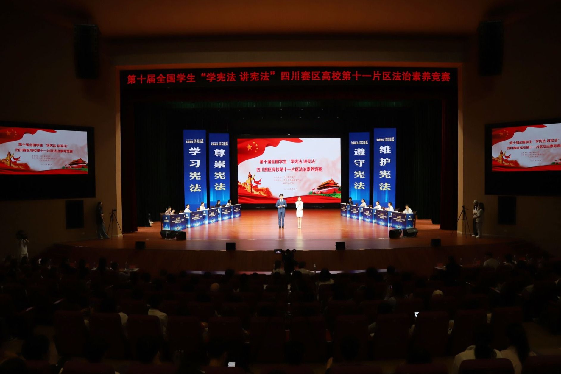 为引导学生深入学习宪法核心要义,推动宪法精神转化为日常行为准则,9 月26 日,第十届全国学生“学宪法 讲宪法”活动四川赛区高校第十一片区赛在我校苌弘剧院举行。本次竞赛由我校党委宣传部与法学与历史文化学院共同承办。我院谭化容老师、周玉娇老师担任仲裁,来自川内10所高校的代表队以及我院学生积极参与。