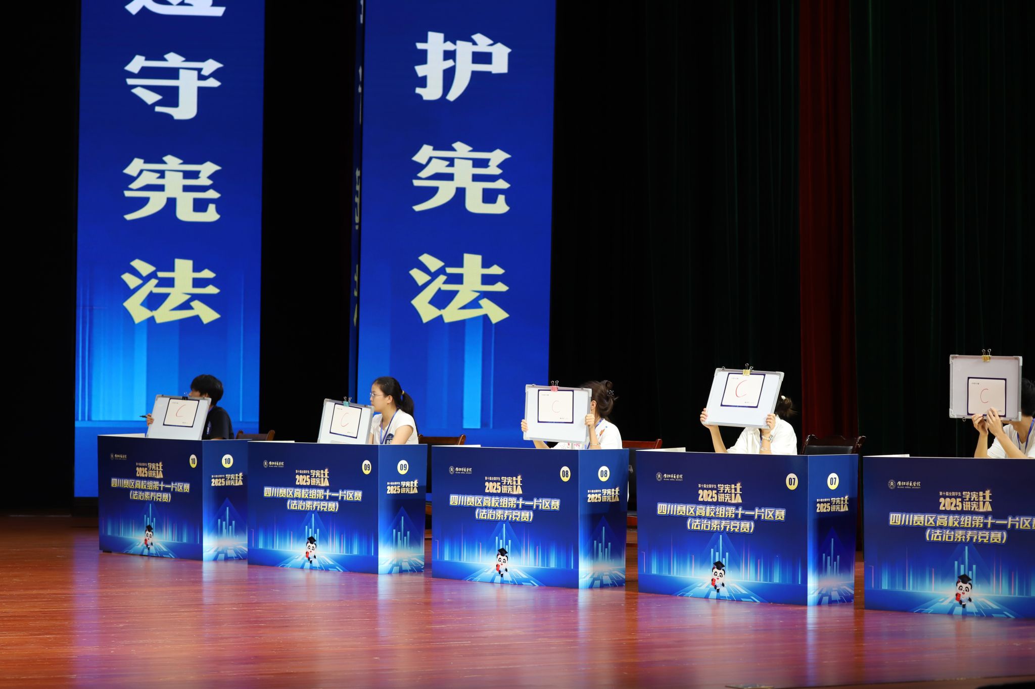 此次赛事以公民基本权利义务、宪法修正案等为核心考点,分设单选题和多选题。比赛过程中,参赛选手们面对考题全神贯注、从容应答,无论是对法条的精准记忆,还是对宪法精神的理解阐释,都展现出扎实的知识储备与出色的临场应变能力。场外,观赛学生认真聆听,在观摩中深化宪法认知。最后,经过多轮角逐,西南医科大学和宜宾学院代表队凭借130分的优异成绩成功晋级。