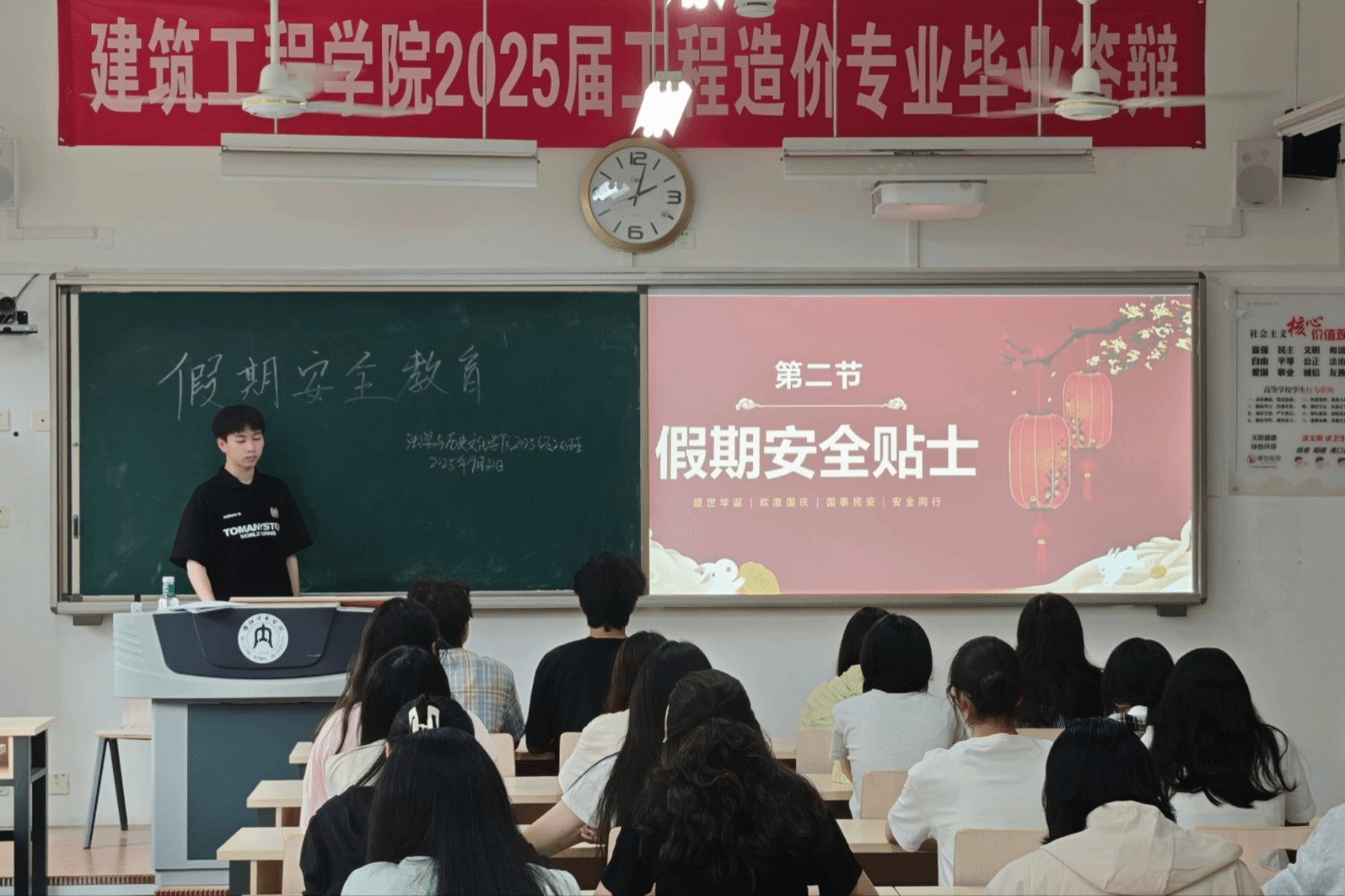 为增强学生安全意识,提升自我防护能力,我院各班于9月26日至9月30日在明德楼各教室开展了”假期安全教育“主题班会。此次班会由各班主任主持,全体同学积极参与。