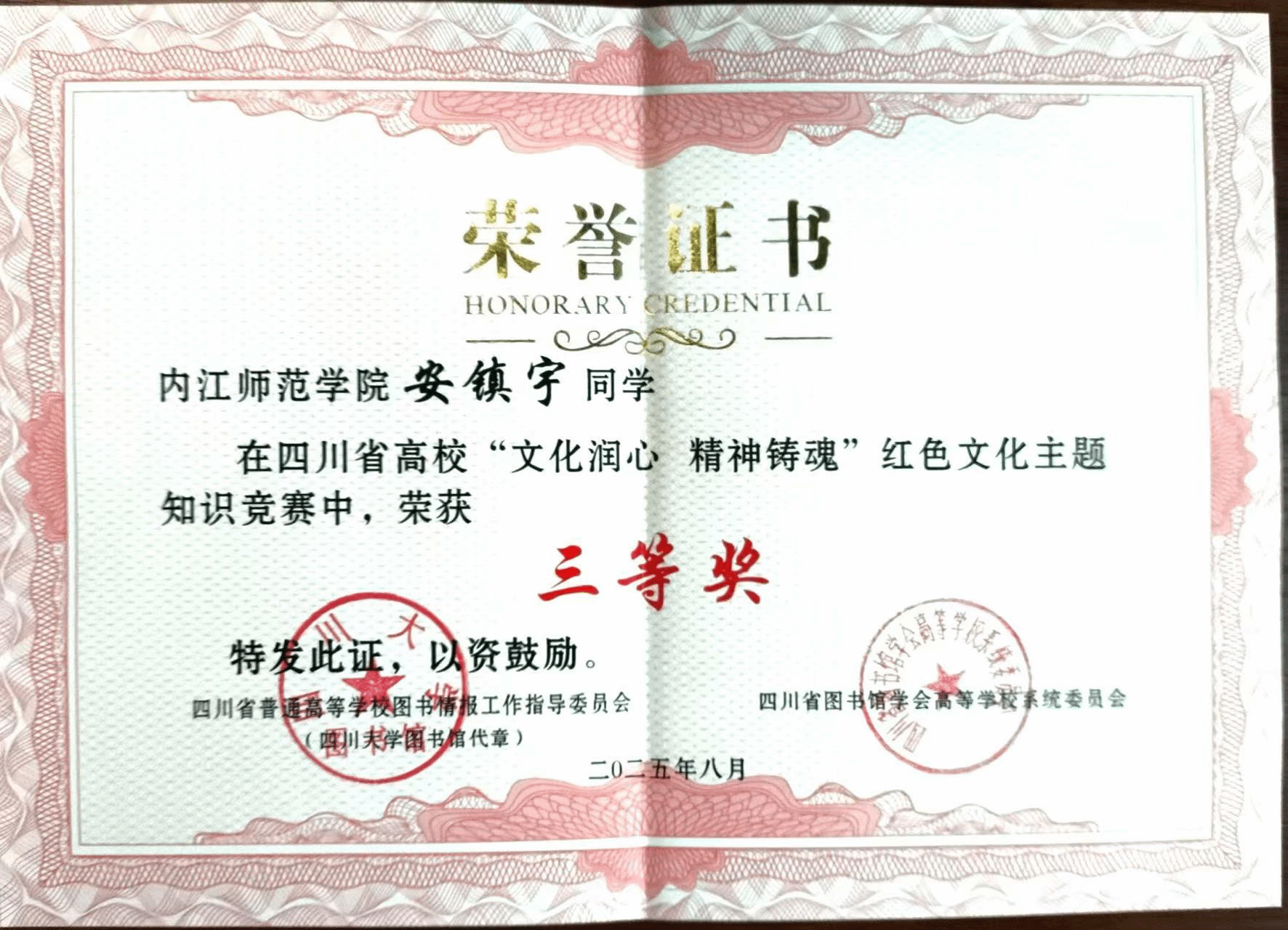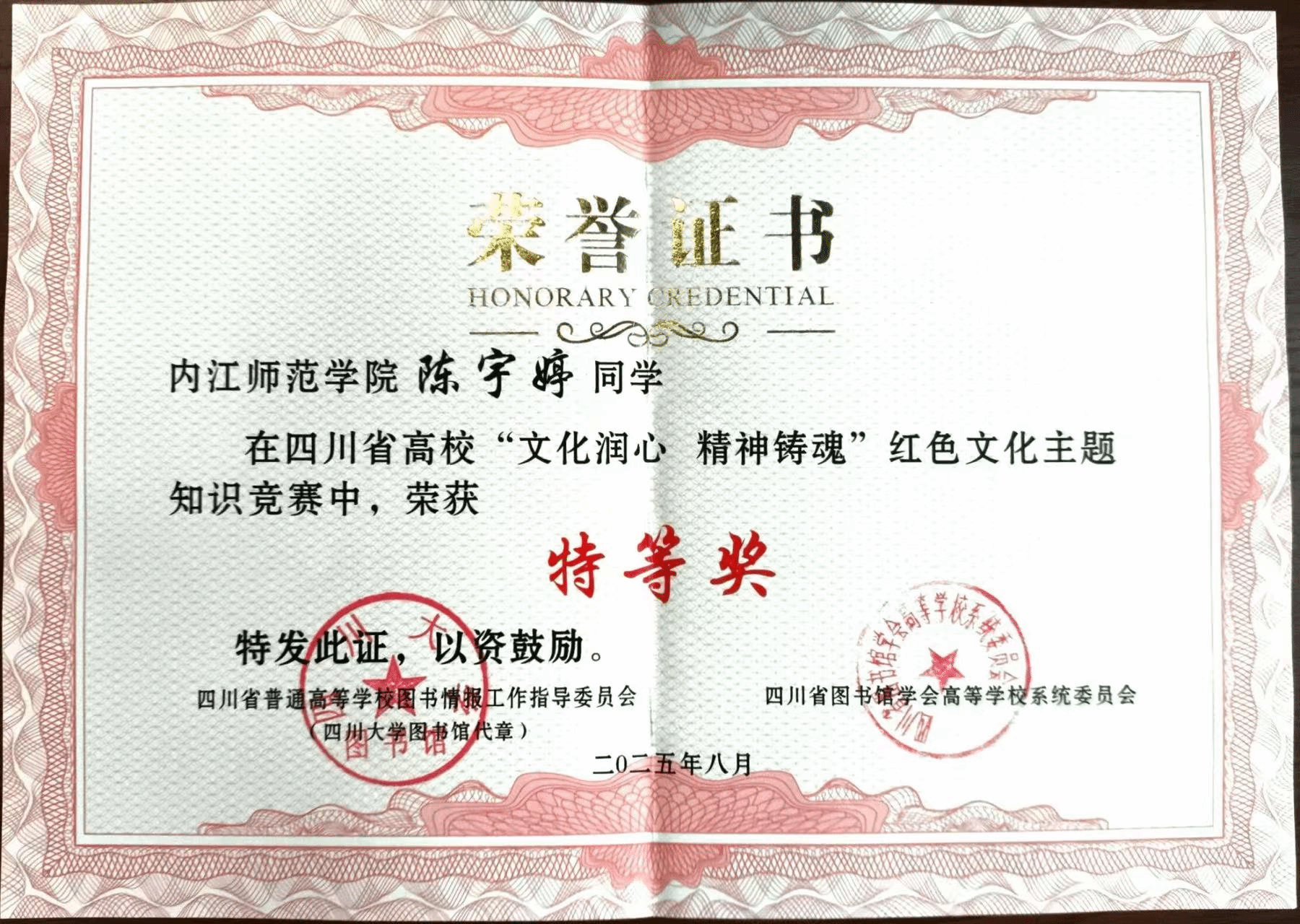 此次竞赛由我院与多方合力开展,打造学生全面发展的赋能体系,为参赛学子保驾护航。经过紧张激烈的知识比拼,我院学子最终斩获佳绩。其中,陈宇婷同学的作品《红梅丹心照汗青——江姐精神里的文化传承密码》荣获全省唯一特等奖,安镇宇同学荣获三等奖。他们通过不懈努力和勤奋拼搏为我院赢得了荣誉,用实际行动诠释了新时代青年对红色精神的传承与担当。