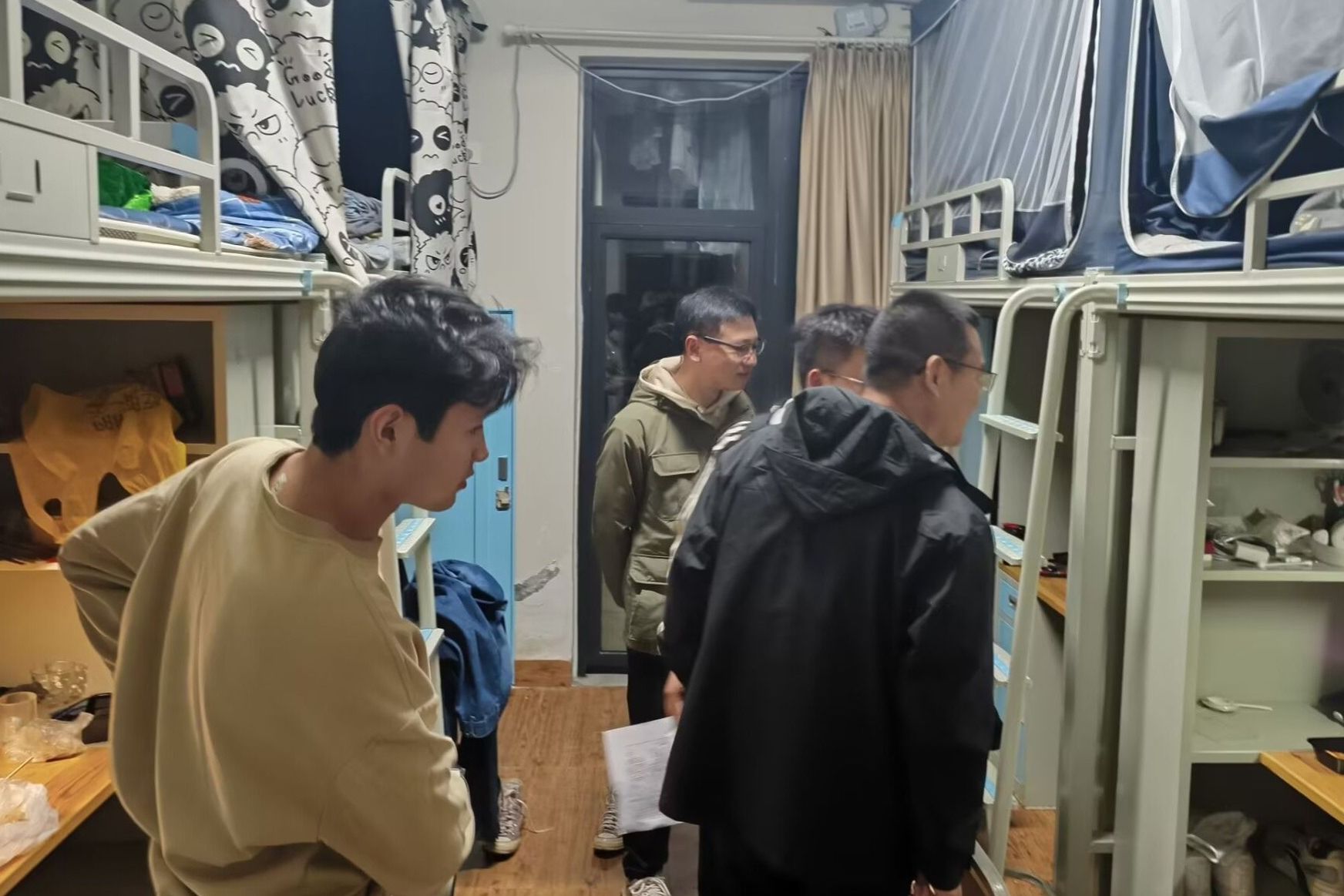 此次检查重点聚焦于违规使用大功率电器以及撕拉乱接电线等常见宿舍用电问题,力争借助排查手段消除寝室用电隐患。在排查过程中,老师们仔细检查学生宿舍,指出寝室存在的用电风险,并监督学生进行整改,通过落实整改要求来保障住宿安全。