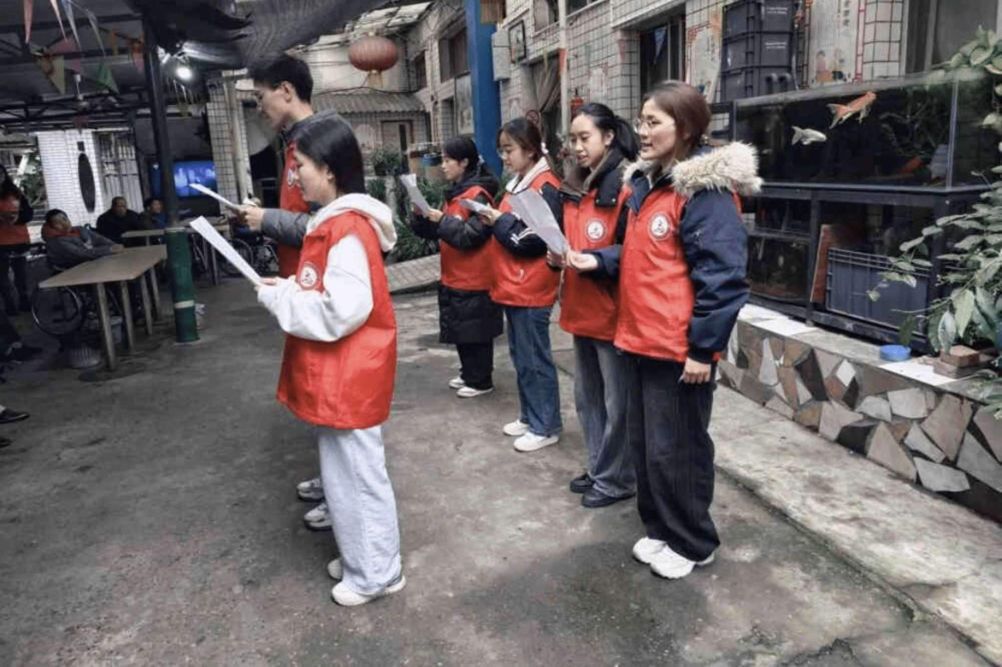 活动中,志愿者与老人们合唱歌曲《我爱你中国》,悠扬的歌声传递着温暖与希望;声情并茂的诗朗诵《宪法的颜色》让法治精神在潜移默化中浸润心田。同时,志愿者们为老人发放法律知识宣传海报,有效增强老人的法律认知。最后,志愿者们通过互动小游戏,在知识问答中向老人普及法律常识、强化反诈意识。