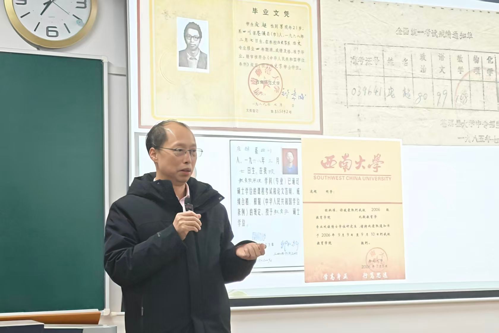 为帮助学生明晰前行路径,夯实逐梦奋进的思想根基,12月7日,我校教育科学研究院院长庞超教授到明德楼A209教室参加2025级历史2A、2B班班会,以“立足专业学习,书写自己未来历史”为题为同学们作专题讲座。