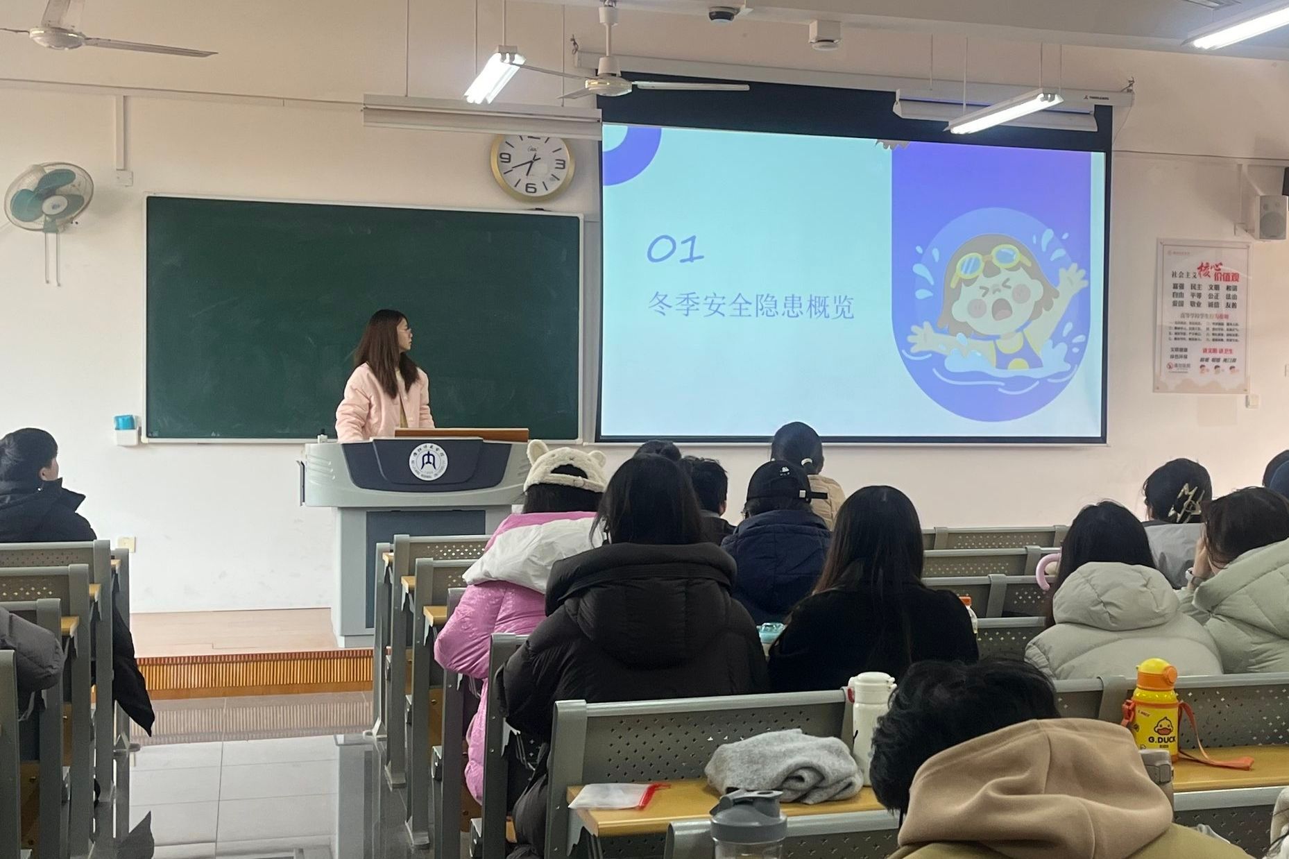 为增强学生冬季安全意识,筑牢校园安全防线,我院各班于12月21日在明德楼各教室陆续开展了以“平安过冬,安全相伴”为主题的班会活动。本次班会由各班主任主持,全体同学积极参加。