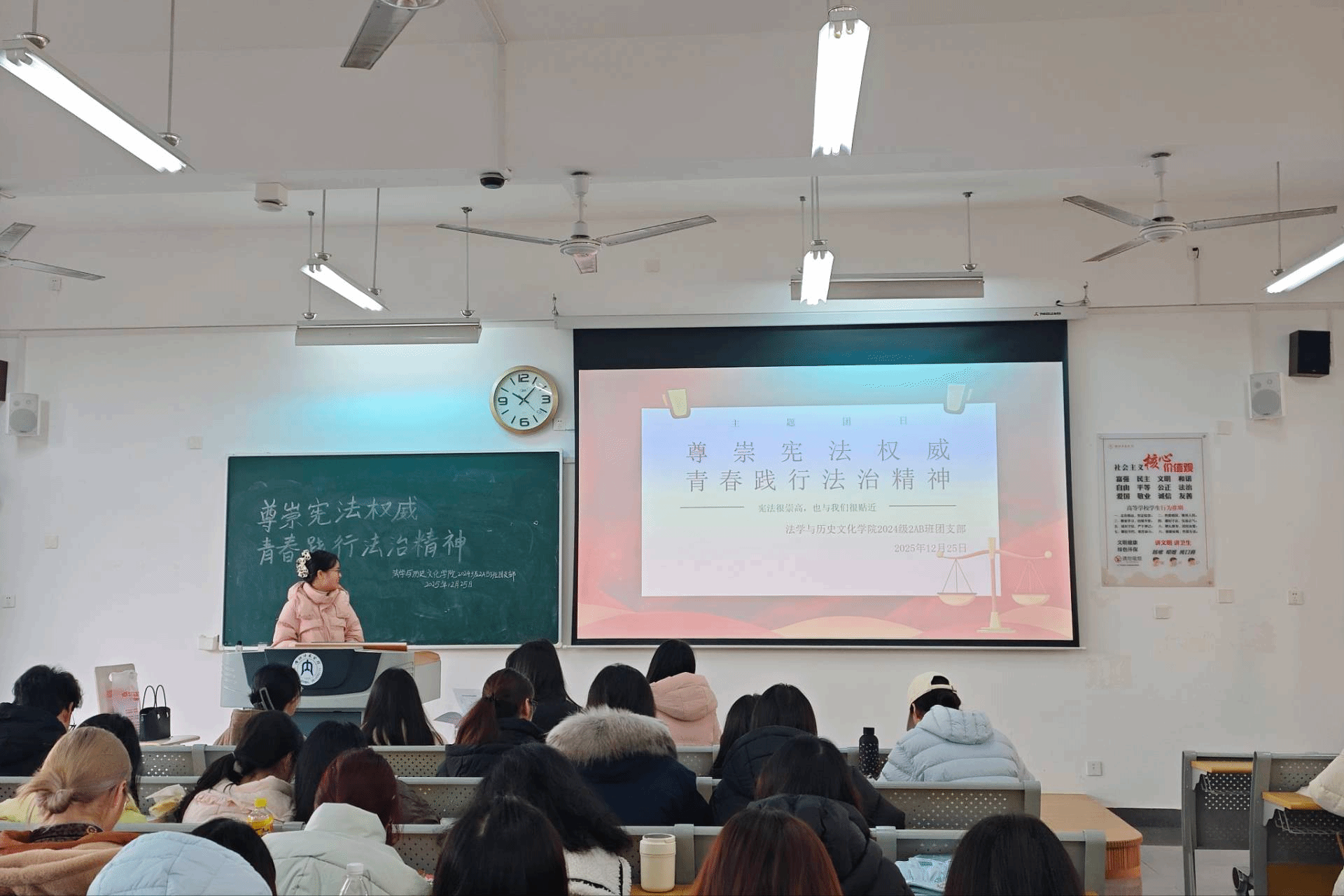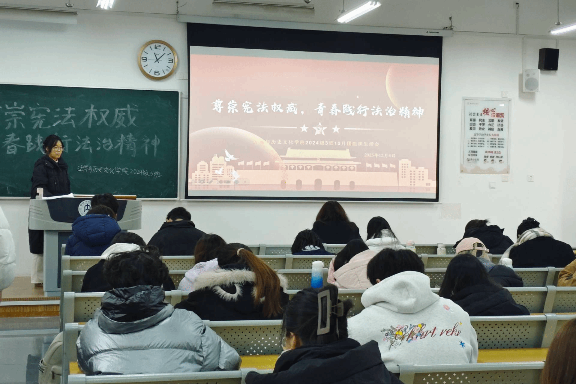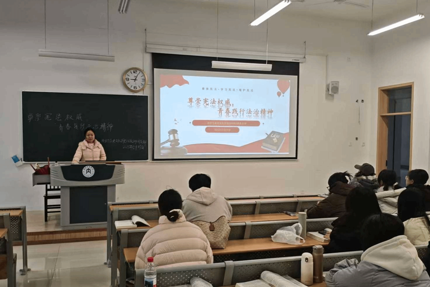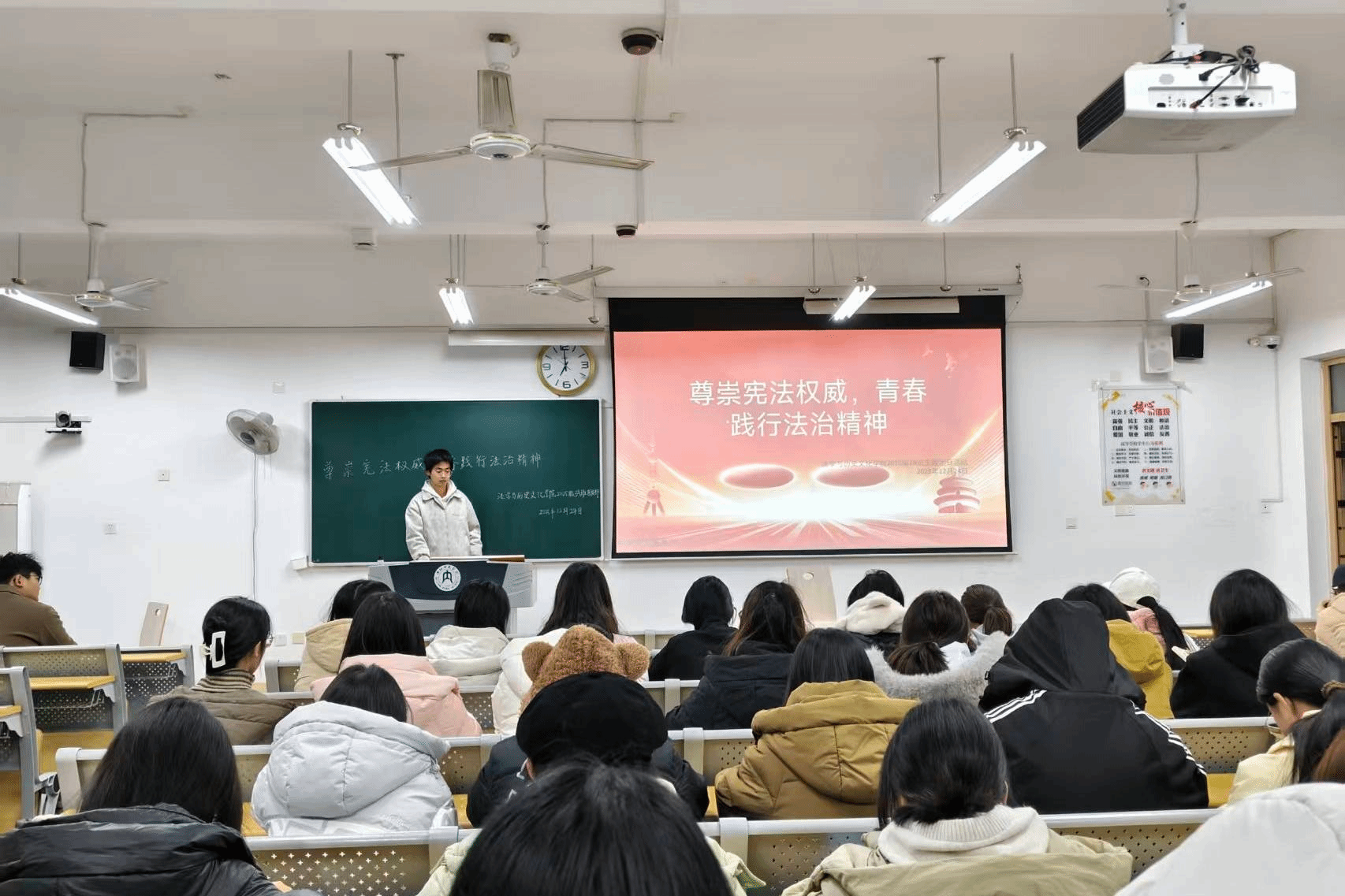 为全面弘扬宪法精神,增强同学们的法治意识,我院各班团支部于12月26日在明德楼各教室陆续召开以“尊崇宪法权威,青春践行法治精神”为主题的团组织生活会,本次会议由各班团支书主持,全体同学积极参与。